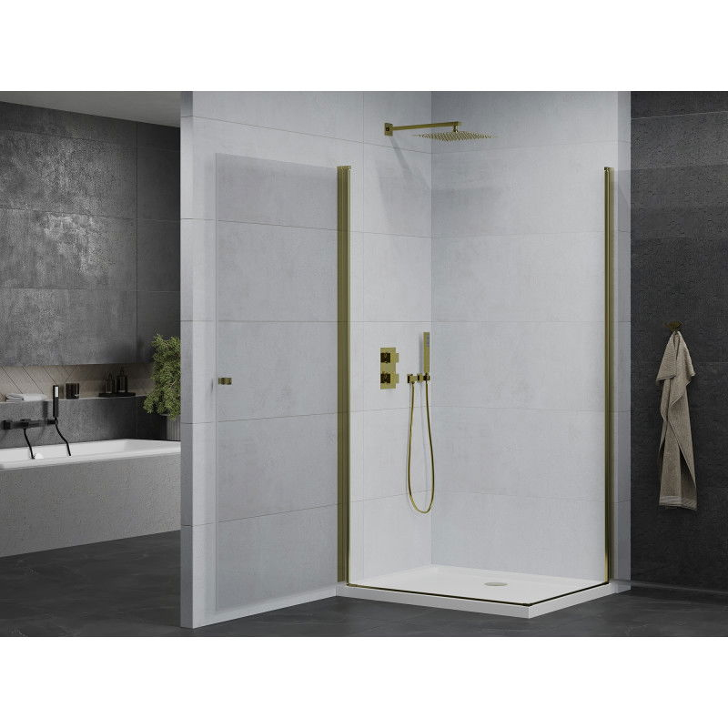 Mexen Pretoria Duo výklopný sprchový kout 80 x 70 cm, průhledný, zlatý + plochá sprchová vanička - 852-080-070-50-02-4010G