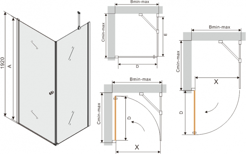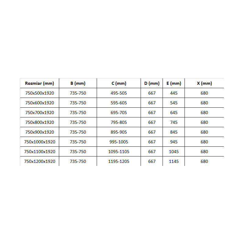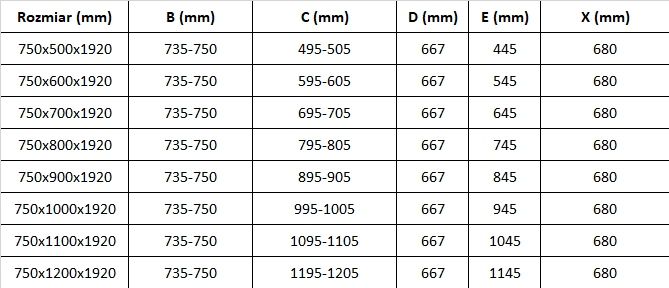 Rozmer: 75x110 cm (dvere 75 cm, stena 110 cm)