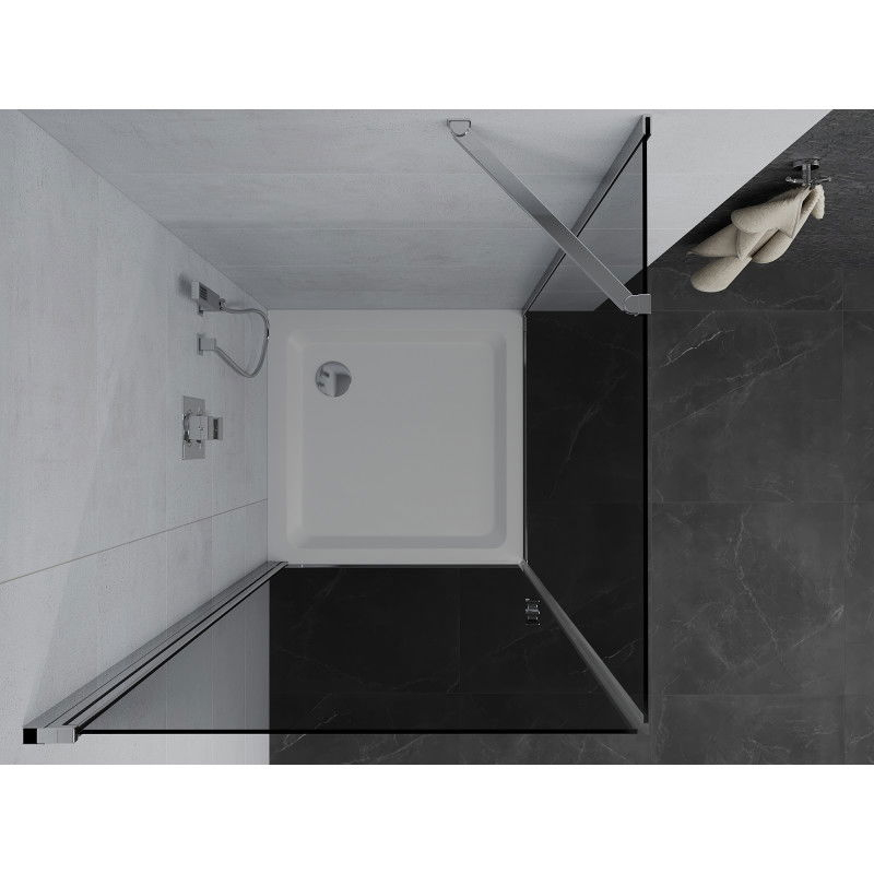 Mexen Pretoria výklopný sprchový kout 100 x 100 cm, grafit, chrom + plochá sprchová vanička - 852-100-100-01-40-4010