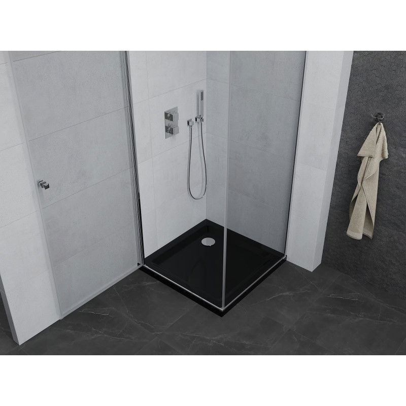Mexen Pretoria výklopný sprchový kout 100 x 100 cm, průhledný, chrom + plochá sprchová vanička, černá - 852-100-100-01-00-4070