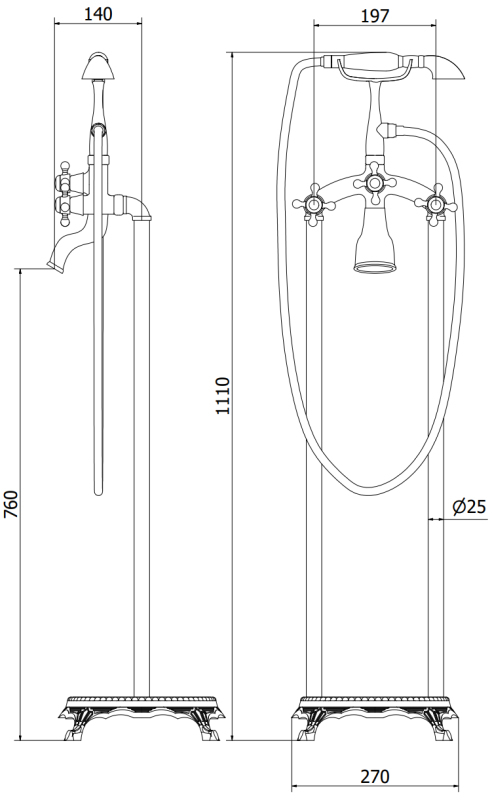 MEXEN RETRO batéria vaňová, voľne stojaca, chróm 75933-00