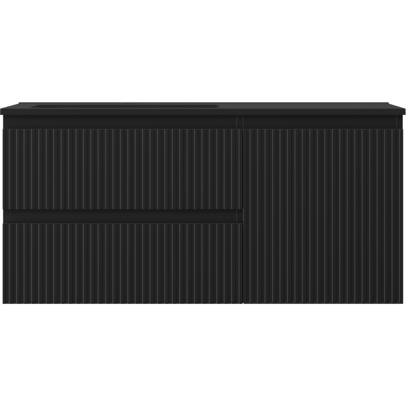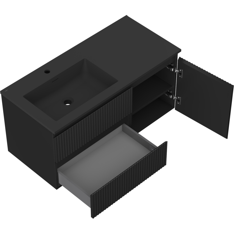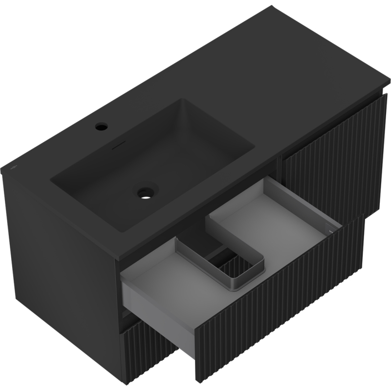 Mexen Rivel koupelnová skříňka 100 cm s umyvadlem Otis levým, 2S, 1D, drážkovaná, matná černá - 91A23-10047-3-BBFFF71-W18L71