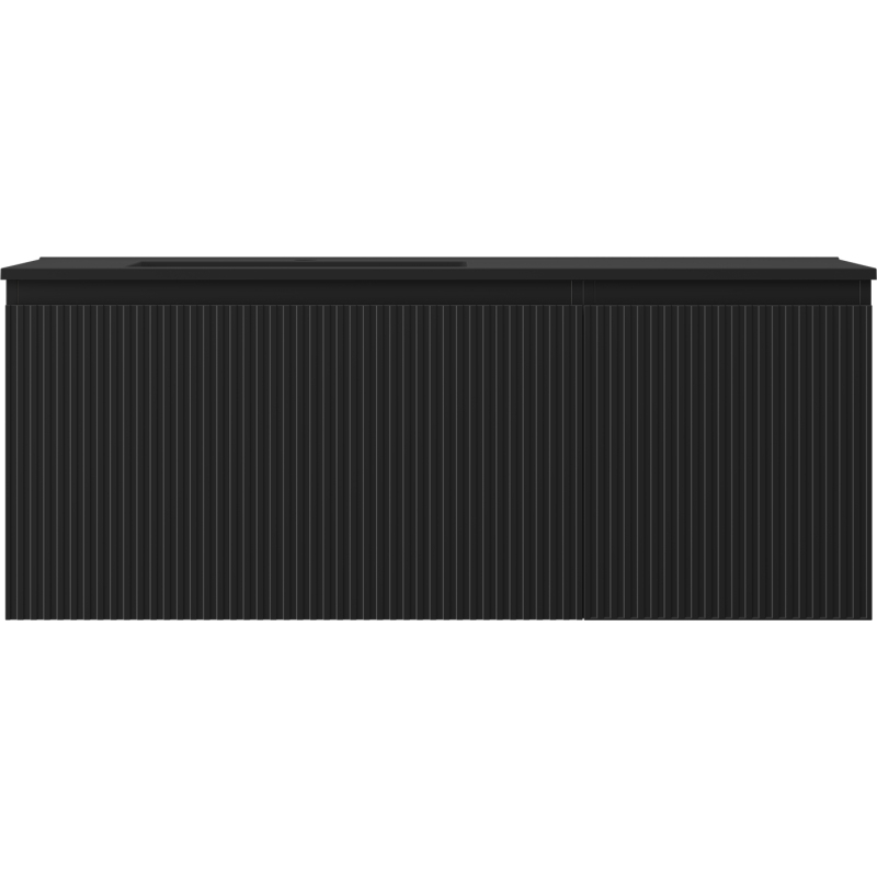 Mexen Rivel koupelnová skříňka 120 cm s umyvadlem Otis vlevo, 1S, 1D, drážkovaná, matná černá - 91A23-12047-3-BBFF71-W18L71