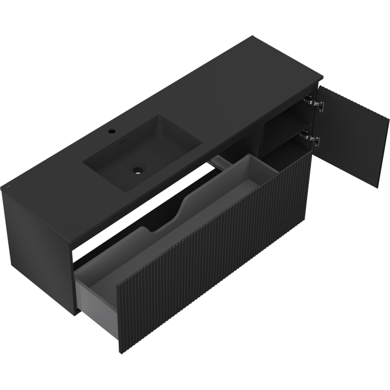 Mexen Rivel koupelnová skříňka 160 cm s umyvadlem Otis levým, 1S, 1D, drážkovaná, matná černá - 91A23-16047-3-BBFF71-W18L71