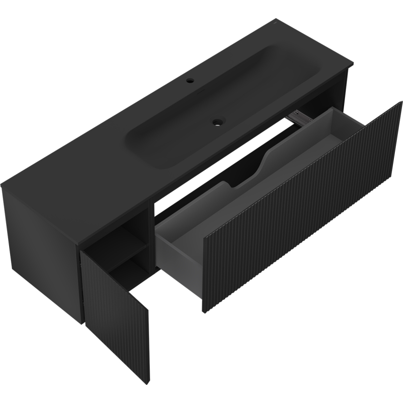Mexen Rivel koupelnová skříňka 160 cm s umyvadlem Vela pravá, 1S, 1D, drážkovaná, matná černá - 91A23-16047-3-BBFF71-W23P71