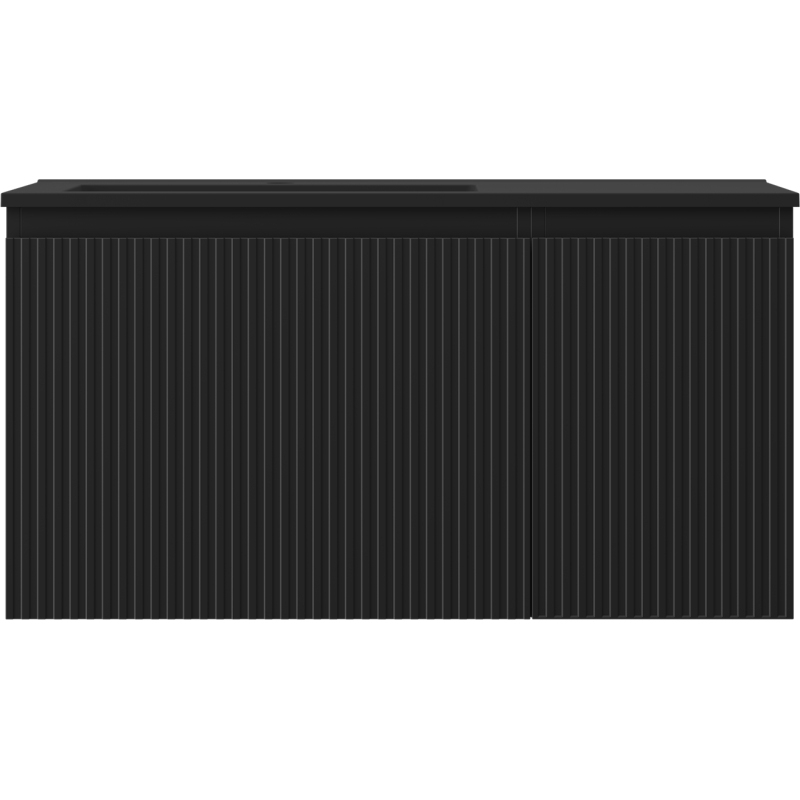 Mexen Rivel koupelnová skříňka 90 cm s umyvadlem Otis levým, 1S, 1D, drážkovaná, matná černá - 91A23-09047-3-BBFF71-W18L71