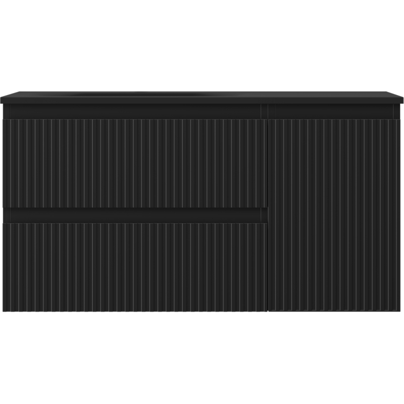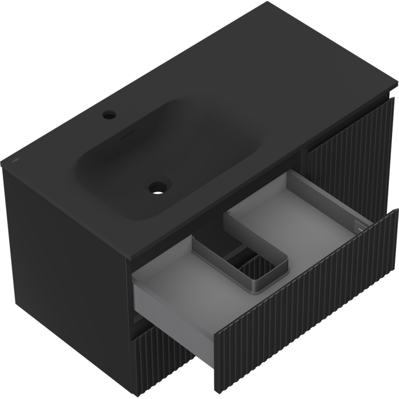Mexen Rivel koupelnová skříňka 90 cm s umyvadlem Vela levým, 2S, 1D, drážkovaná, matná černá - 91A23-09047-3-BBFFF71-W23L71