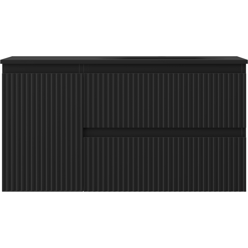 Mexen Rivel koupelnová skříňka 90 cm s umyvadlem Vela pravá, 2S, 1D, drážkovaná, matná černá - 91A23-09047-3-BBFFF71-W23P71
