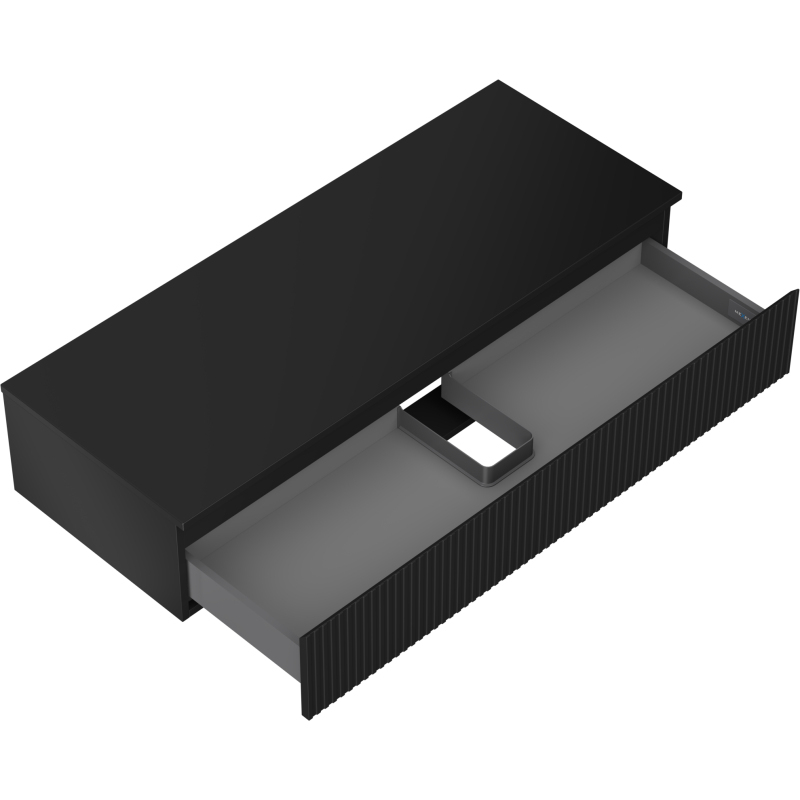 Mexen Rivel koupelnová skříňka pod umyvadlo 120 cm s pracovní deskou, 1 zásuvka, drážkovaná, matná černá - 91A20-12023-1-BFC71