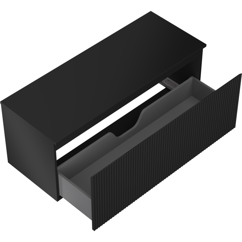 Mexen Rivel koupelnová skříňka pod umyvadlo 120 cm s pracovní deskou, 1 zásuvka, drážkovaná, matná černá - 91A20-12047-1-BFC71
