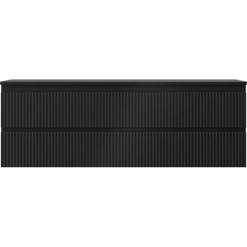 Mexen Rivel koupelnová skříňka pod umyvadlo 140 cm s deskou, 2 zásuvky, drážkovaná, matná černá - 91A20-14047-2-BFFC71