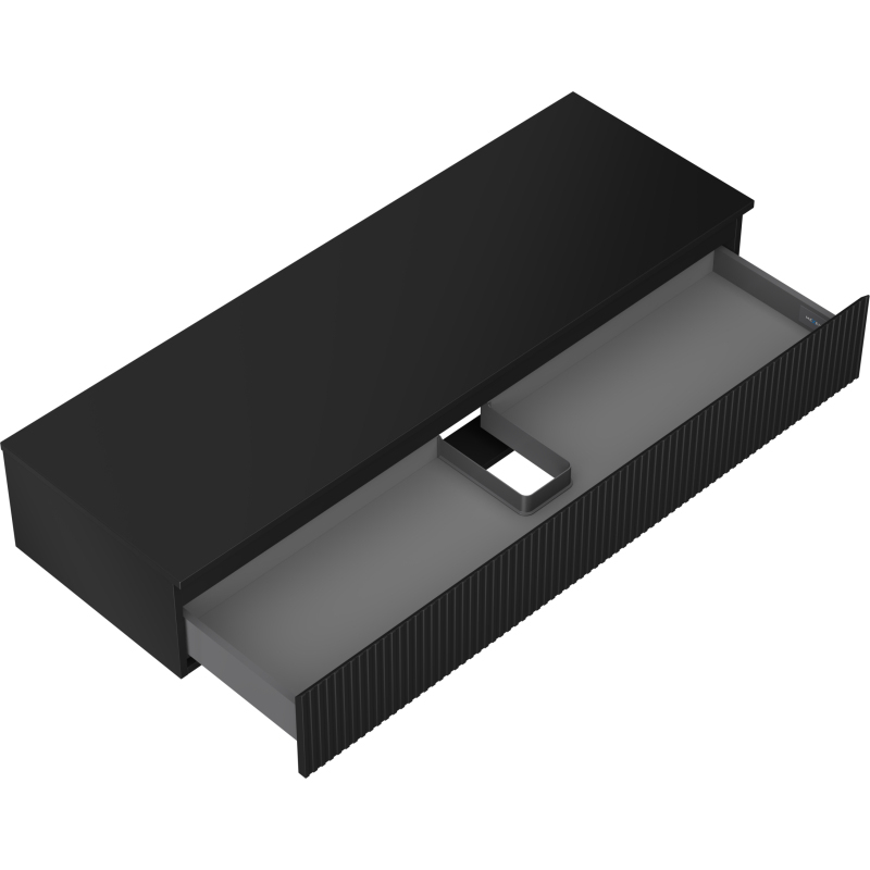 Mexen Rivel koupelnová skříňka pod umyvadlo 140 cm s pracovní deskou, 1 zásuvka, drážkovaná, matná černá - 91A20-14023-1-BFC71