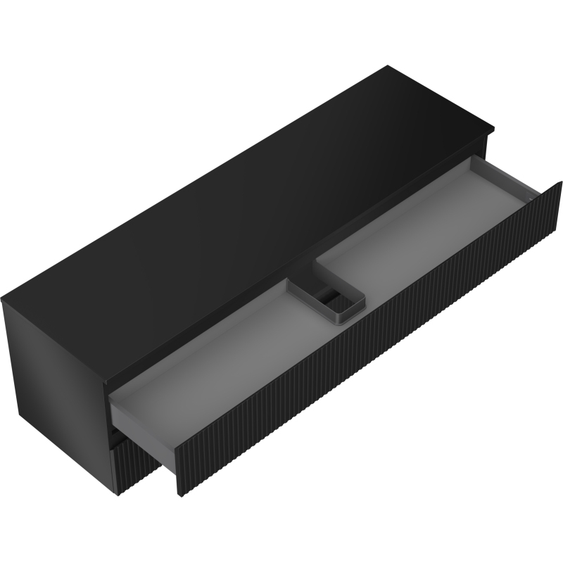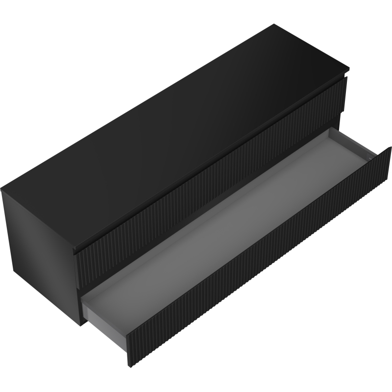 Mexen Rivel koupelnová skříňka pod umyvadlo 160 cm s pracovní deskou, 2 zásuvky, drážkovaná, matná černá - 91A20-16047-2-BFFC71