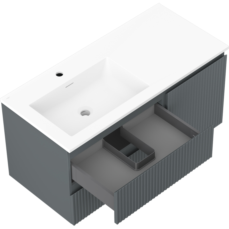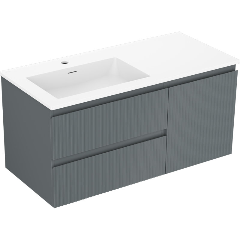 Mexen Rivel kúpeľňová skrinka 100 cm s umývadlom Otis ľavým, 2S, 1D, drážkovaná, grafit/matná biela - 91A23-10047-3-BBFFF66-W18L01
