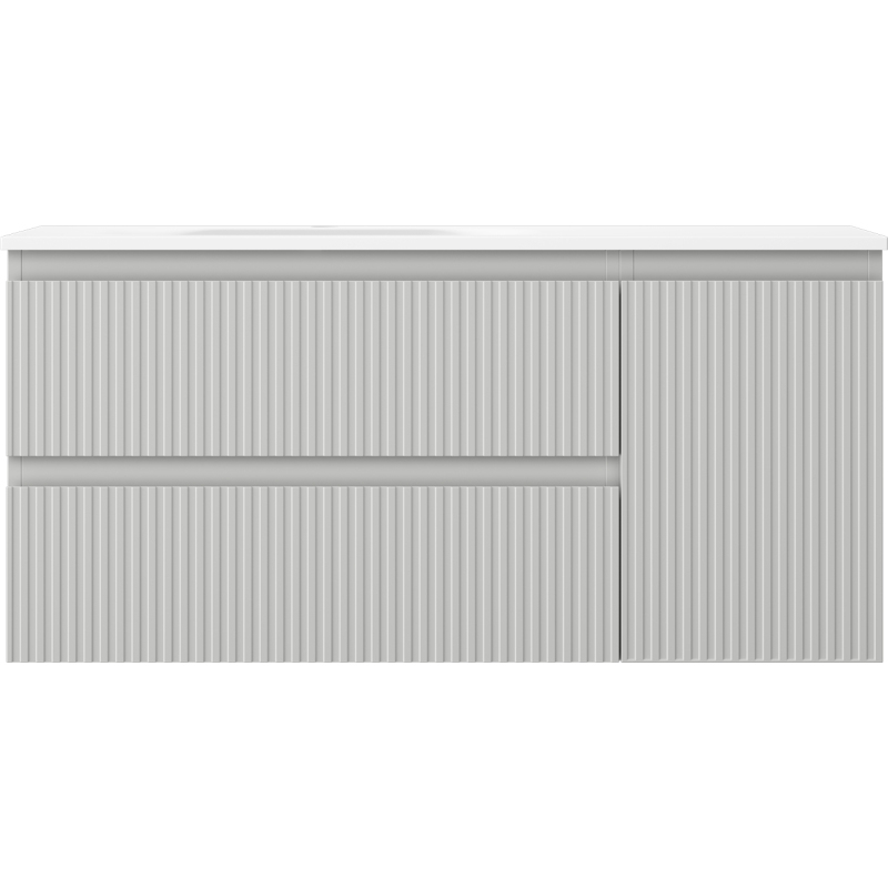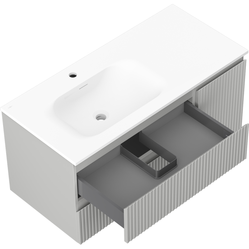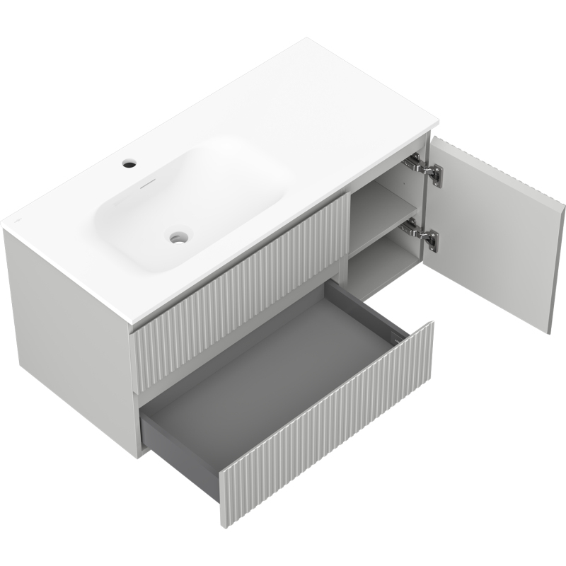 Mexen Rivel kúpeľňová skrinka 100 cm s umývadlom Vela ľavým, 2S, 1D, drážkovaná, matná šedá/matná biela - 91A23-10047-3-BBFFF62-W23L01
