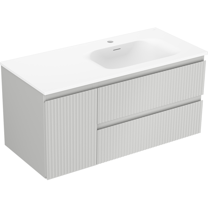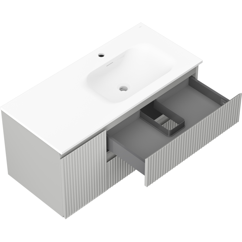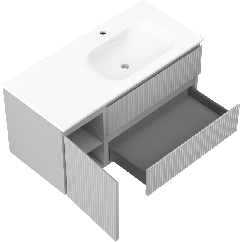 Mexen Rivel kúpeľňová skrinka 100 cm s umývadlom Vela pravá, 2S, 1D, drážkovaná, šedá/matne biela - 91A23-10047-3-BBFFF62-W23P01