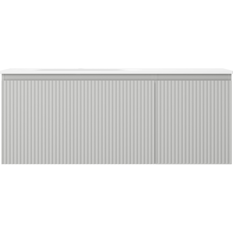 Mexen Rivel kúpeľňová skrinka 120 cm s umývadlom Vela ľavým, 1S, 1D, drážkovaná, matná šedá/matná biela - 91A23-12047-3-BBFF62-W23L01