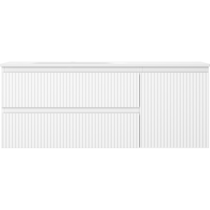 Mexen Rivel kúpeľňová skrinka 120 cm s umývadlom Vela ľavým, 2S, 1D, drážkovaná, matná biela - 91A23-12047-3-BBFFF01-W23L01