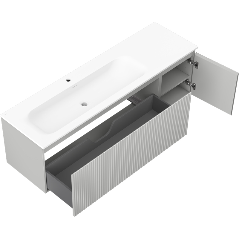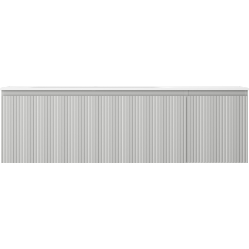 Mexen Rivel kúpeľňová skrinka 160 cm s umývadlom Vela ľavým, 1S, 1D, drážkovaná, matná šedá/matná biela - 91A23-16047-3-BBFF62-W23L01