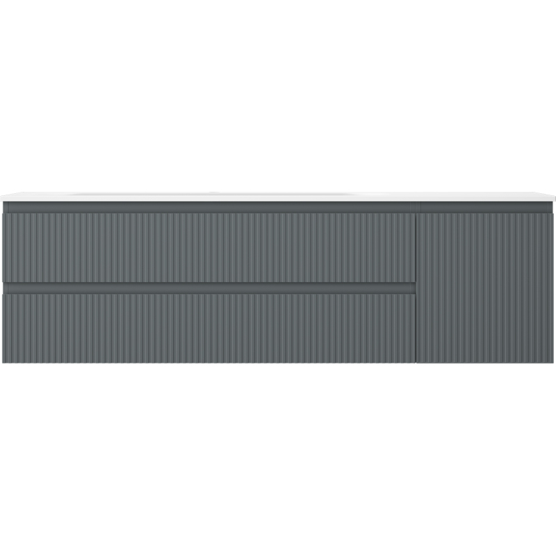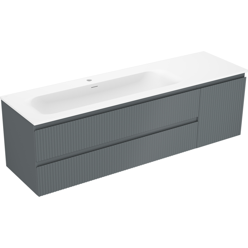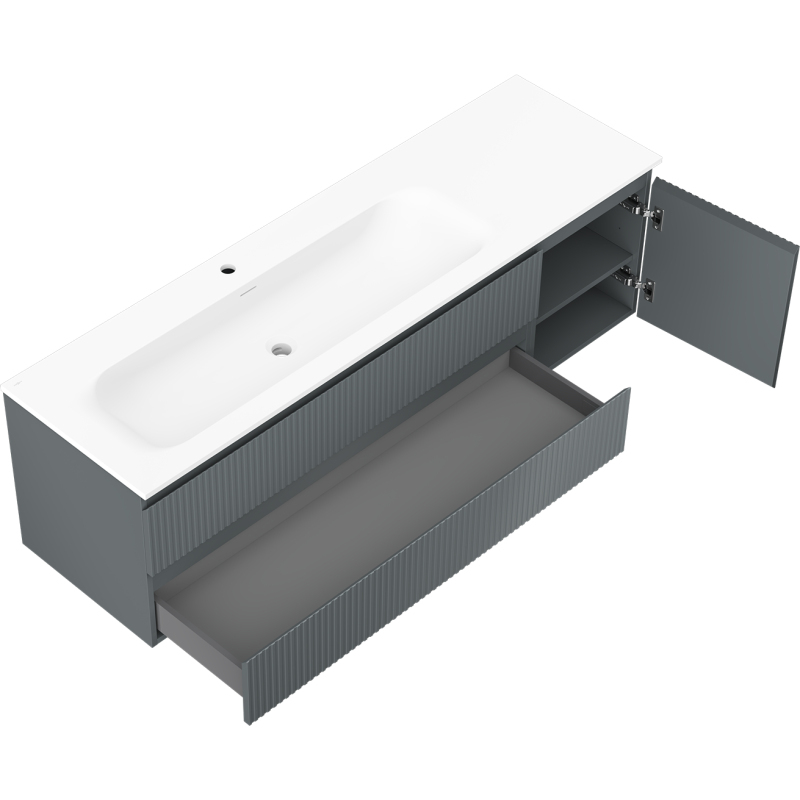 Mexen Rivel kúpeľňová skrinka 160 cm s umývadlom Vela ľavým, 2S, 1D, drážkovaná, grafit/matná biela - 91A23-16047-3-BBFFF66-W23L01