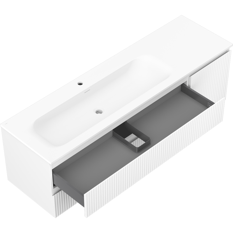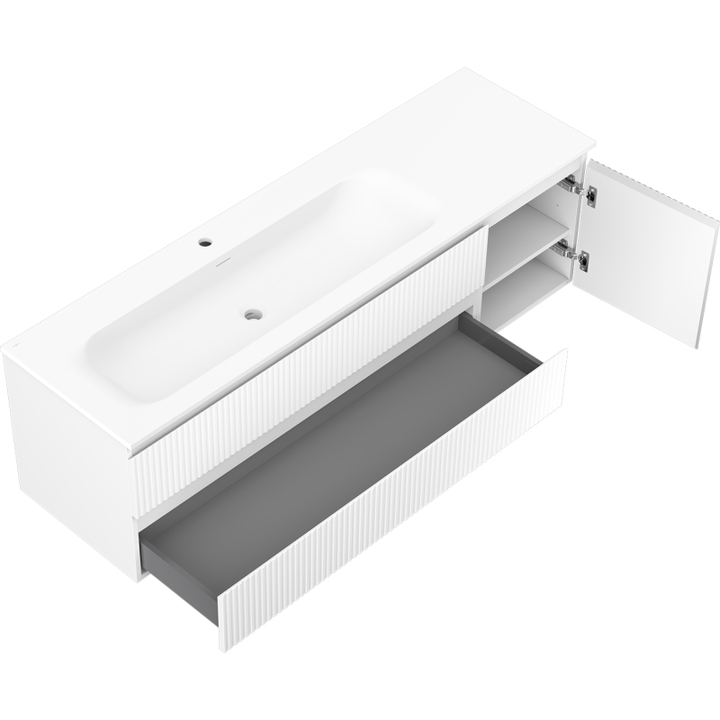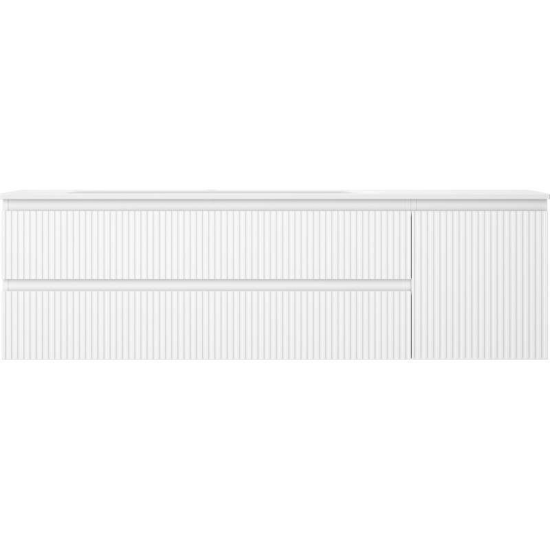 Mexen Rivel kúpeľňová skrinka 160 cm s umývadlom Vela ľavým, 2S, 1D, drážkovaná, matná biela - 91A23-16047-3-BBFFF01-W23L01