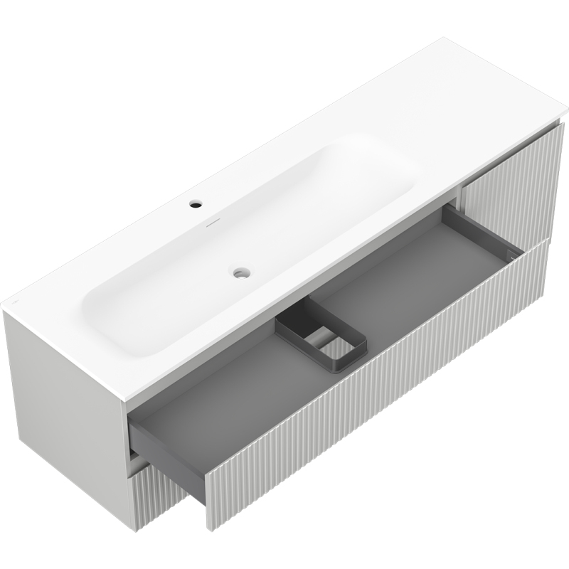 Mexen Rivel kúpeľňová skrinka 160 cm s umývadlom Vela ľavým, 2S, 1D, drážkovaná, matná šedá/matná biela - 91A23-16047-3-BBFFF62-W23L01