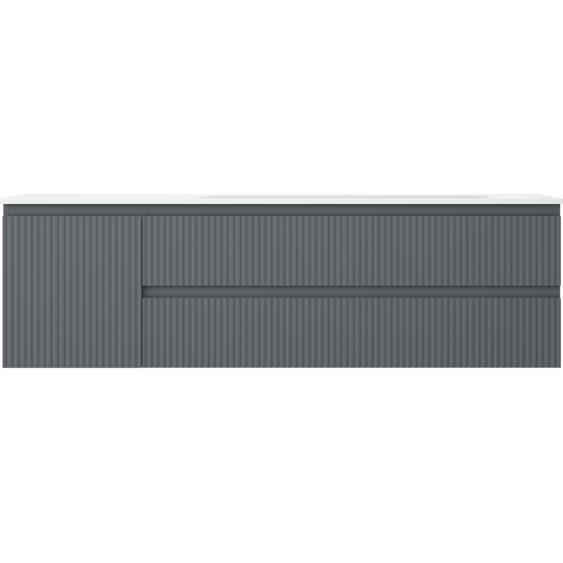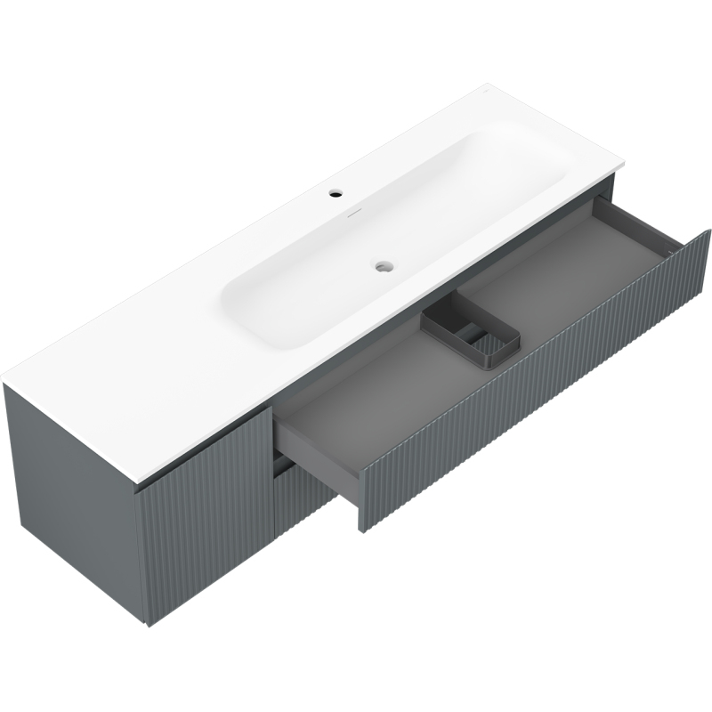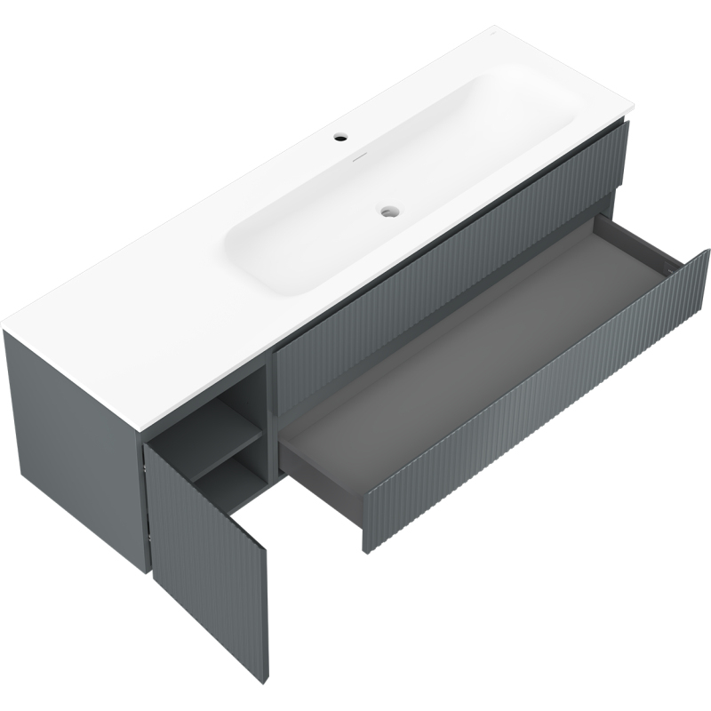 Mexen Rivel kúpeľňová skrinka 160 cm s umývadlom Vela pravá, 2S, 1D, drážkovaná, grafit/matná biela - 91A23-16047-3-BBFFF66-W23P01
