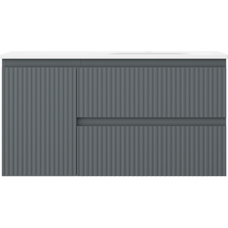 Mexen Rivel kúpeľňová skrinka 90 cm s umývadlom Vela pravá, 2S, 1D, drážkovaná, grafit/matná biela - 91A23-09047-3-BBFFF66-W23P01