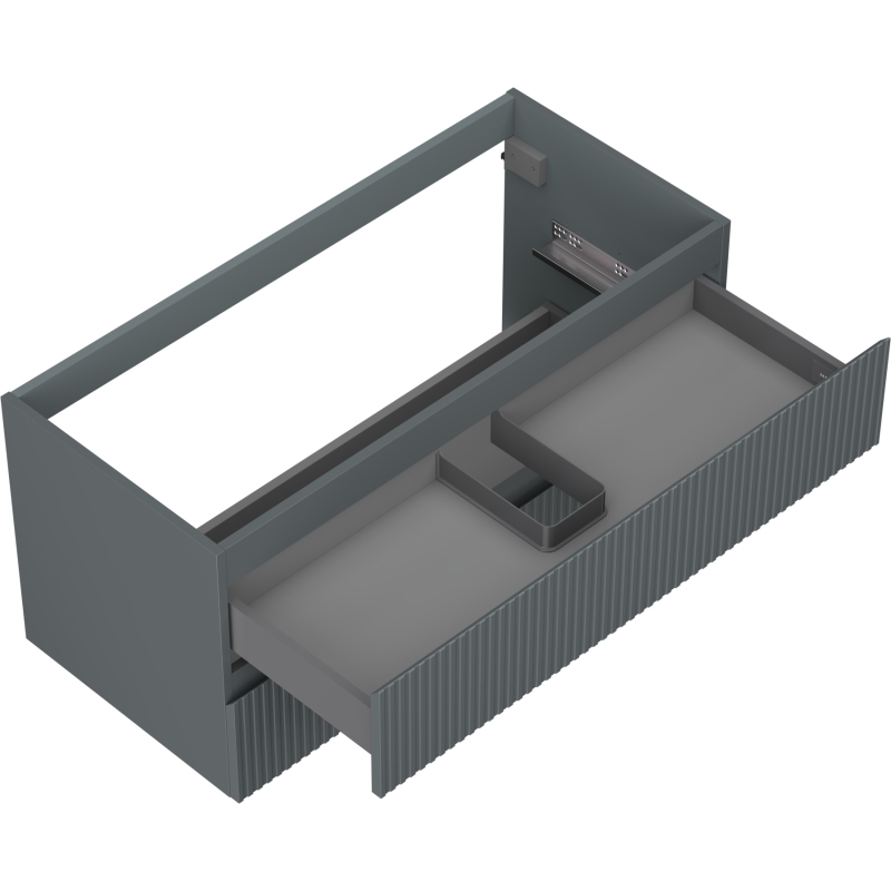 Špecifikácia produktu: Šírka: 100 cm Výška: 47 cm Hĺbka: 46 cm Farba korpusu: Matný grafit Materiál korpusu: Lakovaná doska Farba čela: Matný grafit Materiál čela: Lakovaná MDF doska Štruktúra čela: Drážkovaná Počet zásuviek: 2 Priestranná zásuvka s funkciou obsahu zásuvky Povrch odolný voči UV žiareniu Kombinovateľný s pracovnou doskou alebo umývadlom Otis, Vela Zmontovaný produkt