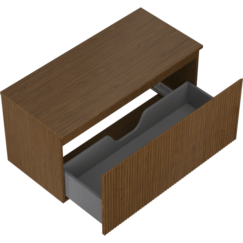 Mexen Rivel kúpeľňová skrinka pod umývadlo 100 cm s pracovnou doskou, 1 zásuvka, drážkovaná, orech - 91A20-10047-1-BFC86