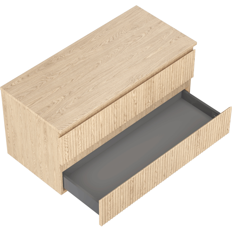 Mexen Rivel kúpeľňová skrinka pod umývadlo 100 cm s pracovnou doskou, 2 zásuvky, drážkovaná, dub - 91A20-10047-2-BFFC81