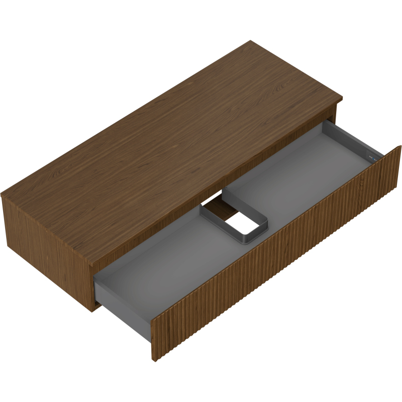 Mexen Rivel kúpeľňová skrinka pod umývadlo 120 cm s pracovnou doskou, 1 zásuvka, drážkovaná, orech - 91A20-12023-1-BFC86