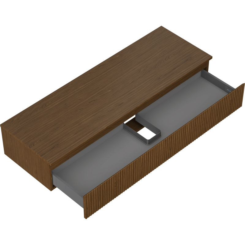 Mexen Rivel kúpeľňová skrinka pod umývadlo 140 cm s pracovnou doskou, 1 zásuvka, drážkovaná, orech - 91A20-14023-1-BFC86