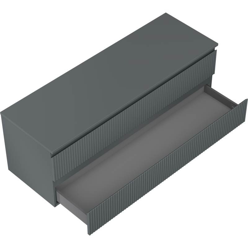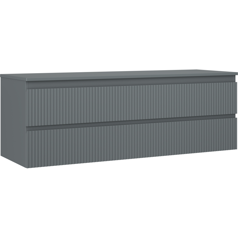 Mexen Rivel kúpeľňová skrinka pod umývadlo 140 cm s pracovnou doskou, 2 zásuvky, drážkovaná, matný grafit - 91A20-14047-2-BFFC66