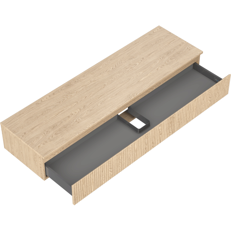 Mexen Rivel kúpeľňová skrinka pod umývadlo 160 cm s pracovnou doskou, 1 zásuvka, drážkovaná, dub - 91A20-16023-1-BFC81