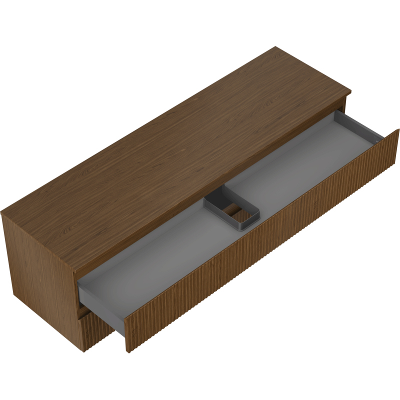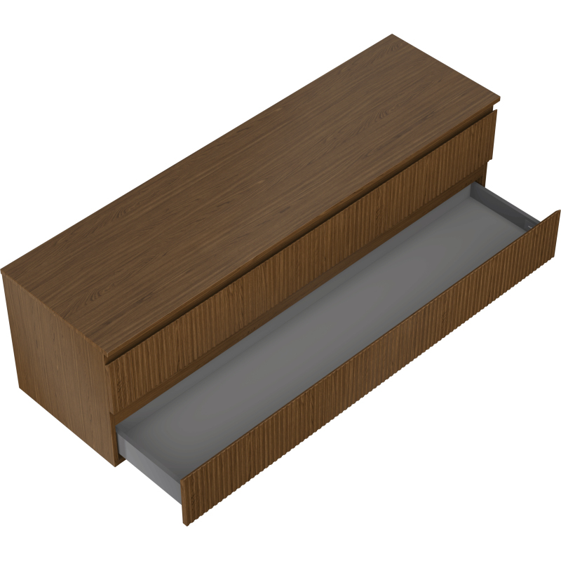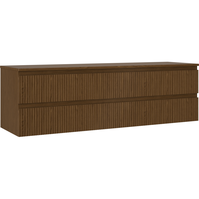 Mexen Rivel kúpeľňová skrinka pod umývadlo 160 cm s pracovnou doskou, 2 zásuvky, drážkovaná, orech - 91A20-16047-2-BFFC86