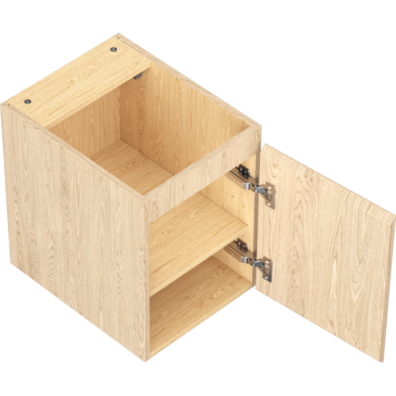 Špecifikácia produktu: Šírka: 35 cm Výška: 47 cm Hĺbka: 46 cm Farba korpusu: Dub Materiál korpusu: Doska + PVC fólia Farba čela: Dub Materiál čela: MDF doska + PVC fólia Konštrukcia čela: Drážkovaná Počet dvierok: 1 1 polica Panty s funkciou tlum (ľavé/pravé) Povrch odolný voči UV žiareniu Možno doplniť pracovnou doskou alebo umývadlom Otis, Vela Zmontovaný produkt
