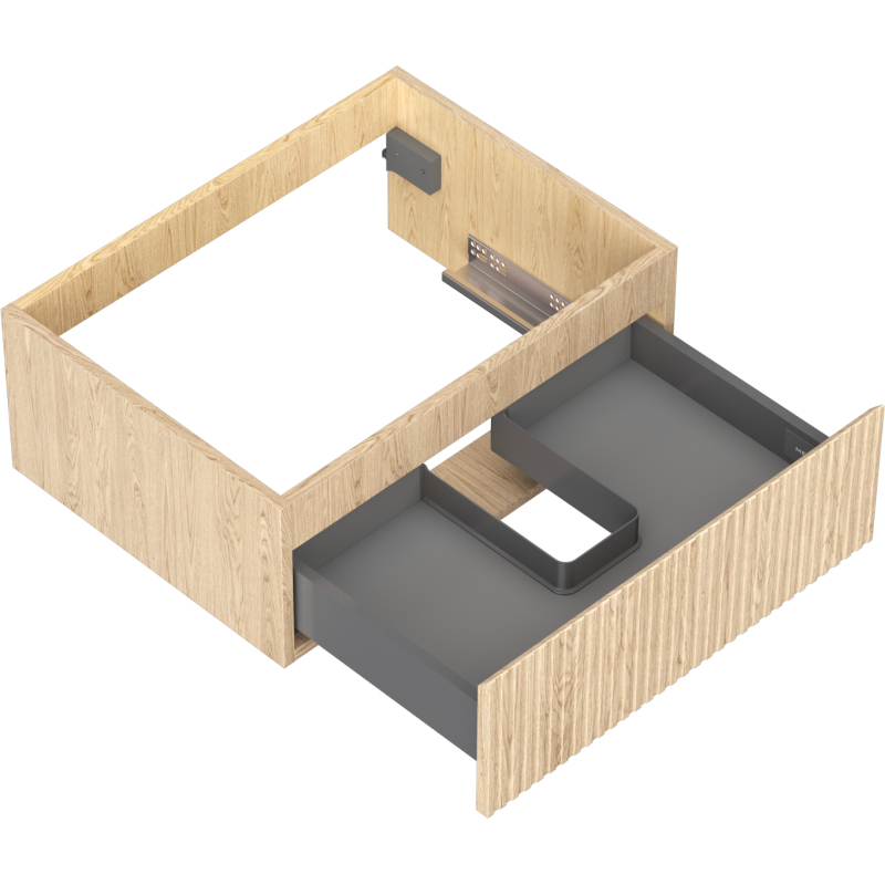 Špecifikácia produktu: Šírka: 60 cm Výška: 23,5 cm Hĺbka: 46 cm Farba korpusu: Dub Materiál korpusu: Doska + PVC fólia Farba čela: Dub Materiál čela: MDF doska + PVC fólia Štruktúra čela: Drážkovaná Počet zásuviek: 1 Priestranná zásuvka s funkciou tlm Povrch odolný voči UV žiareniu Kombinovateľný s pracovnou doskou alebo umývadlom Otis, Vela Zmontovaný produkt