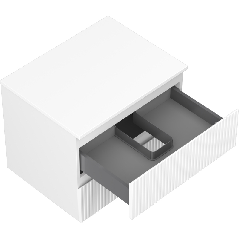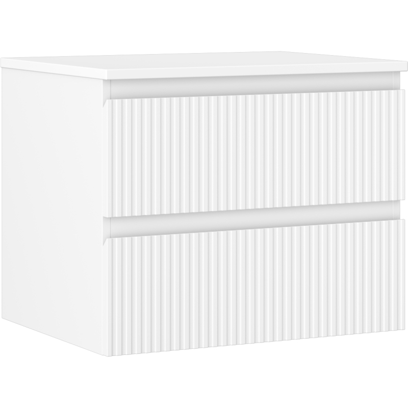 Mexen Rivel kúpeľňová skrinka pod umývadlo 60 cm s doskou, 2 zásuvky, drážkovaná, matná biela - 91A20-06047-2-BFFC01