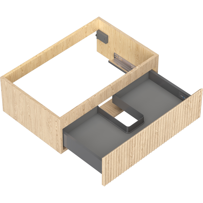 Špecifikácia produktu: Šírka: 70 cm Výška: 23,5 cm Hĺbka: 46 cm Farba korpusu: Dub Materiál korpusu: Doska + PVC fólia Farba čela: Dub Materiál čela: MDF doska + PVC fólia Štruktúra čela: Drážkovaná Počet zásuviek: 1 Priestranná zásuvka s funkciou tlm Povrch odolný voči UV žiareniu Kombinovateľný s pracovnou doskou alebo umývadlom Otis, Vela Zmontovaný produkt