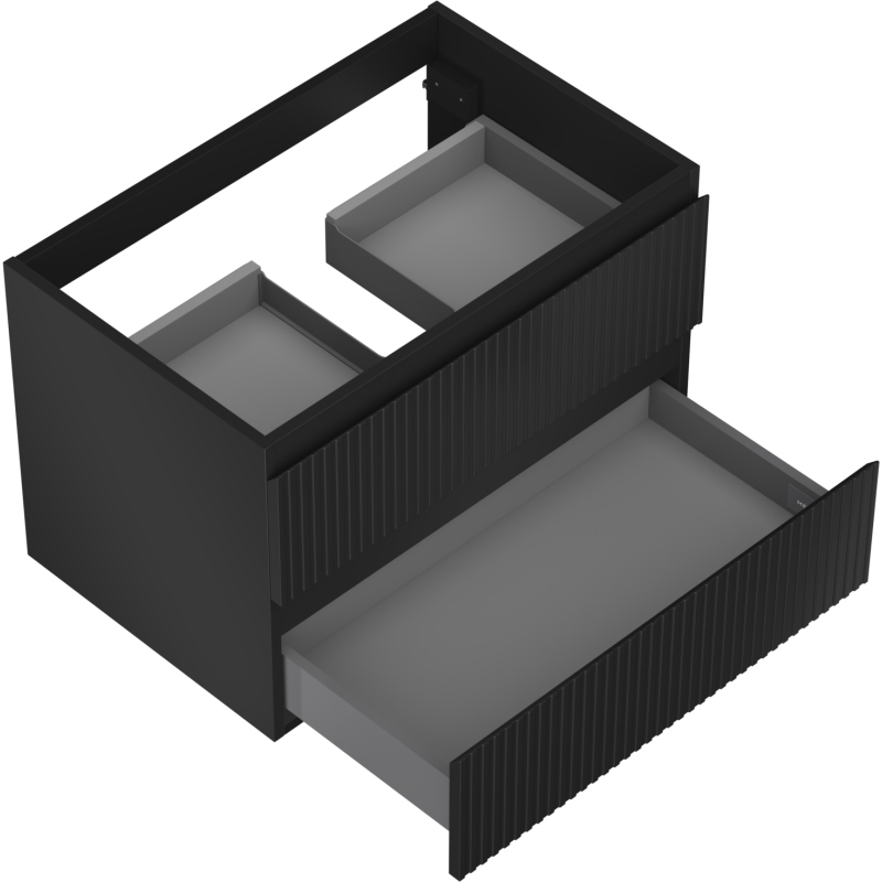 Mexen Rivel kúpeľňová skrinka pod umývadlo 70 cm, 2 zásuvky, drážkovaná, matná čierna - 91A20-07047-2-BFF71
