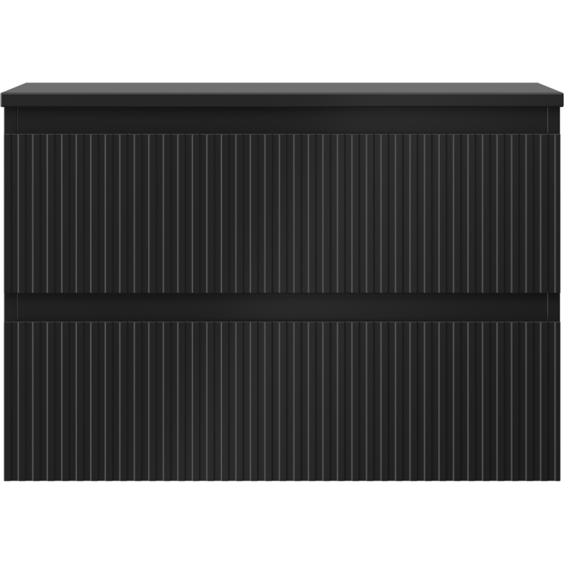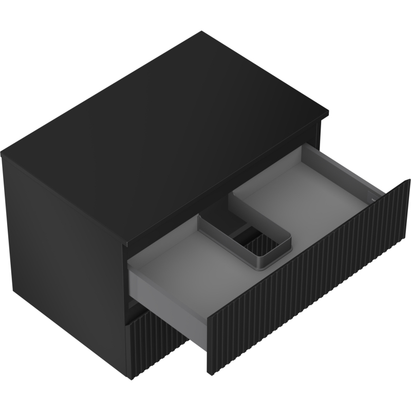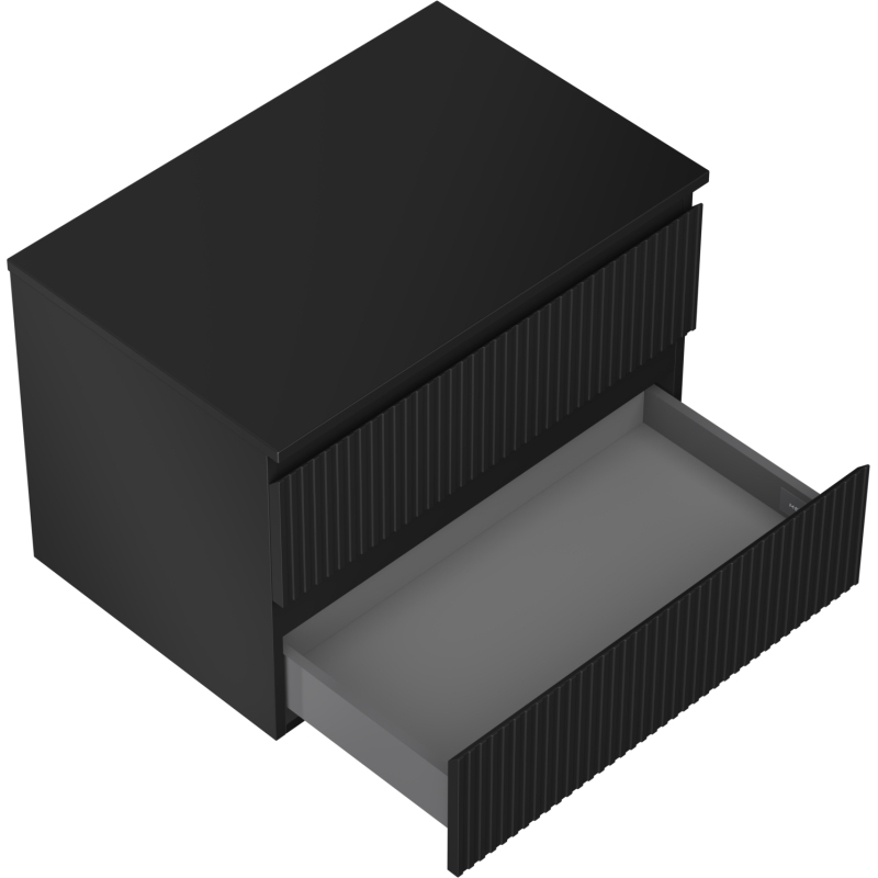 Mexen Rivel kúpeľňová skrinka pod umývadlo 70 cm s pracovnou doskou, 2 zásuvky, drážkovaná, matne čierna - 91A20-07047-2-BFFC71