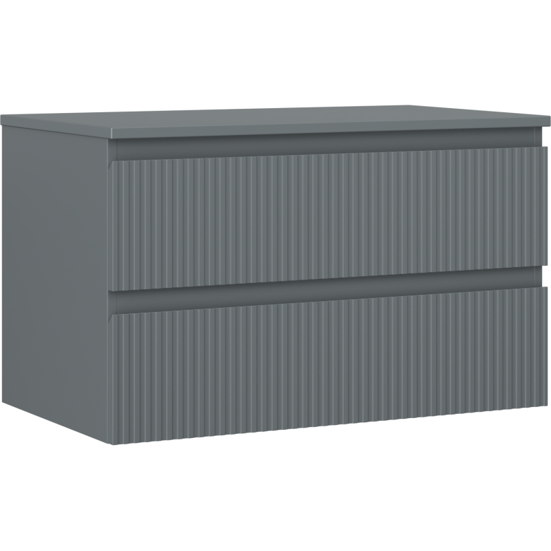 Mexen Rivel kúpeľňová skrinka pod umývadlo 80 cm s pracovnou doskou, 2 zásuvky, drážkovaná, matný grafit - 91A20-08047-2-BFFC66