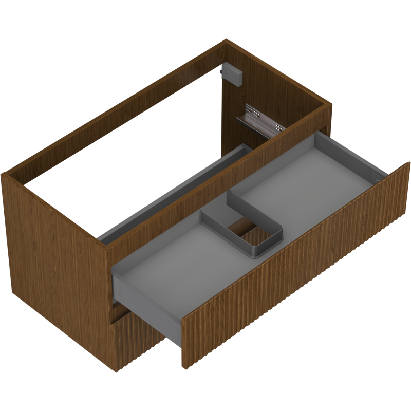 Špecifikácia produktu: Šírka: 90 cm Výška: 47 cm Hĺbka: 46 cm Farba korpusu: Orech Materiál korpusu: Doska + PVC fólia Farba čela: Orech Materiál čela: MDF doska + PVC fólia Štruktúra čela: Drážkovaná Počet zásuviek: 2 Priestranná zásuvka s funkciou zásuvky Povrch odolný voči UV žiareniu Kombinovateľný s pracovnou doskou alebo umývadlom Otis, Vela Zmontovaný produkt
