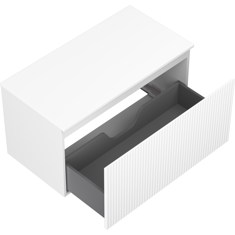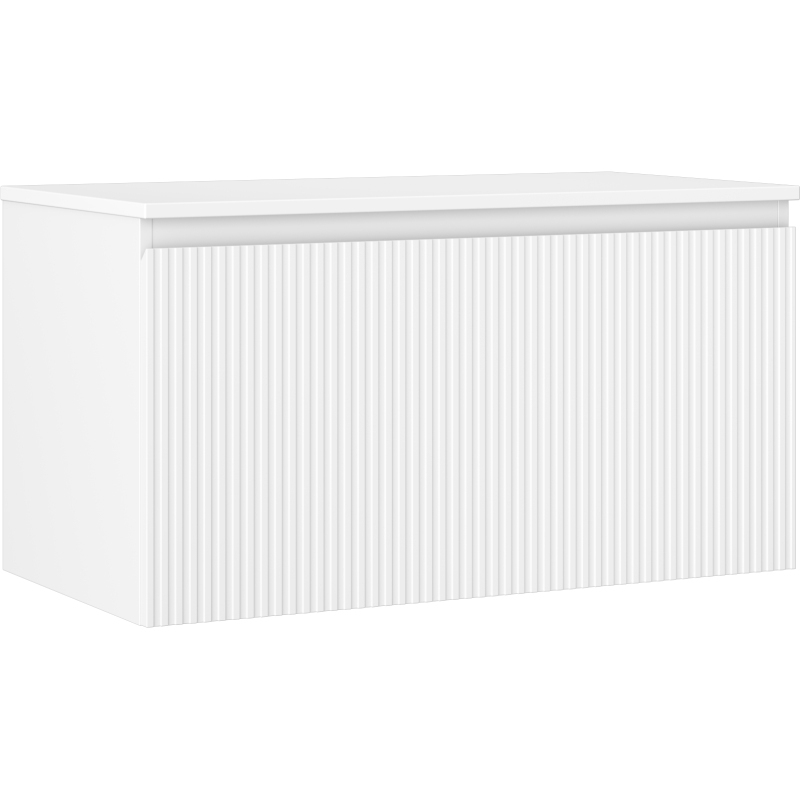 Mexen Rivel kúpeľňová skrinka pod umývadlo 90 cm s pracovnou doskou, 1 zásuvka, drážkovaná, matná biela - 91A20-09047-1-BFC01