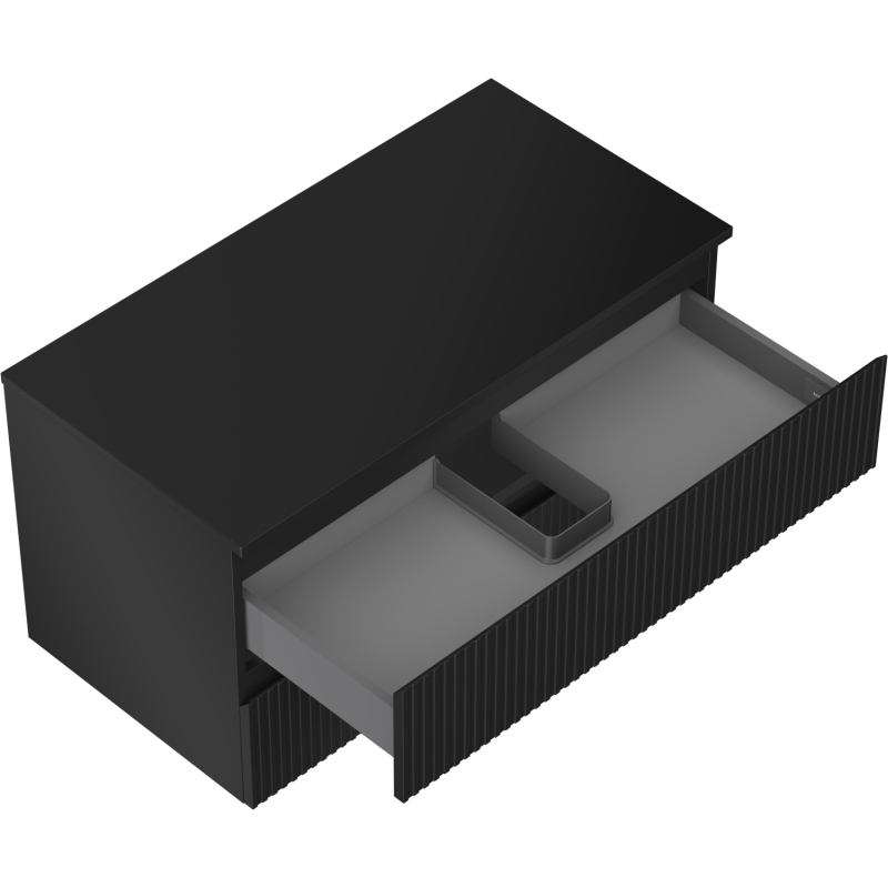 Mexen Rivel kúpeľňová skrinka pod umývadlo 90 cm s pracovnou doskou, 2 zásuvky, drážkovaná, matná čierna - 91A20-09047-2-BFFC71