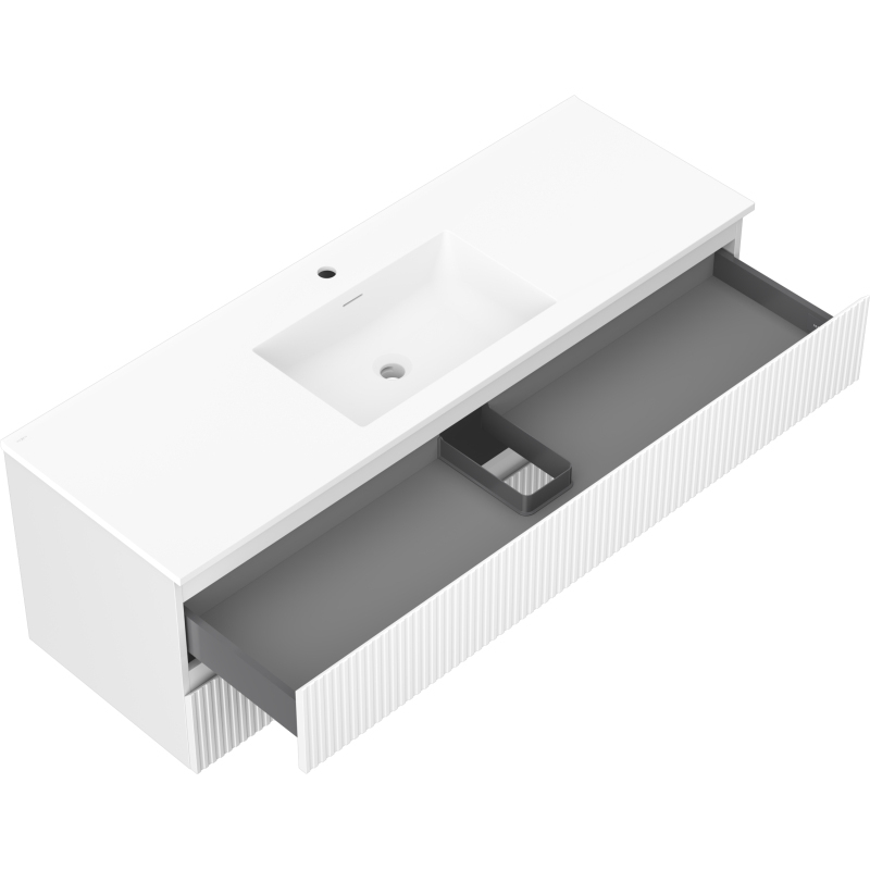 Mexen Rivel szafka łazienkowa 140 cm z umywalką Otis, 2 szuflady, ryflowana , biała mat - 91A20-14047-2-BFF01-W18M01