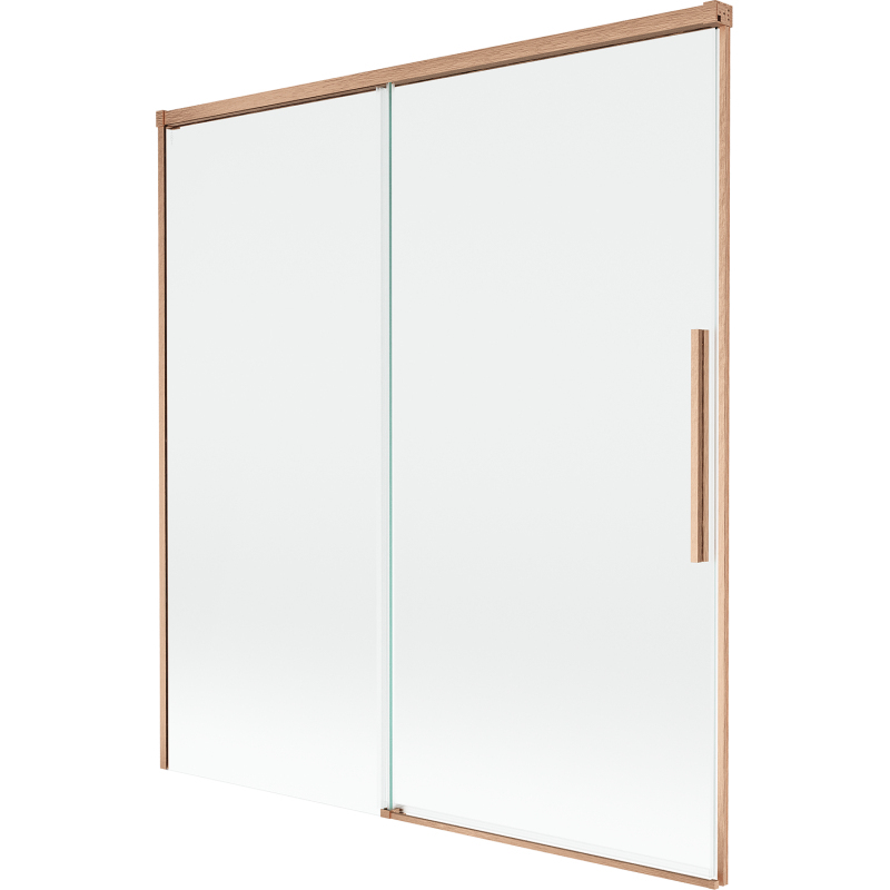 Technické údaje: Šírka: 150 cm Výška: 150 cm Typ: Dvojkrídlové Montáž: Univerzálny Typ: Pohyblivé/Posuvné Typ skla: Tvrdené Farba skla: Priehľadná Hrúbka skla: 8 mm Povrchová úprava: Kartáčovaná meď Profil: Hliník Povlak pre ľahké čistenie otvorov Vodítka s funkciou tichého zatvárania Možnosť sklopenia dverí na čistenie siete Magnetický prúžok a elastomérové tesnenie pre odvod vody Dva montážne systémy: - s profilom, ktorý umožňuje vyrovnanie nerovností steny - bez profilu v prípade dokonale rovných stien