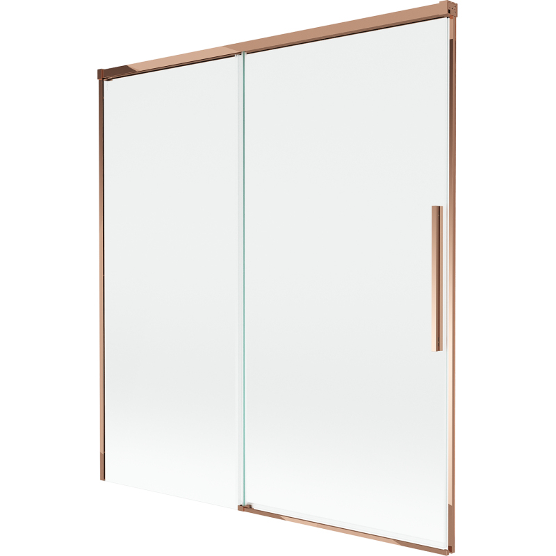 Technické údaje: Šírka: 150 cm Výška: 150 cm Typ: Dvojkrídlové Montáž: Univerzálny Typ: Pohyblivé/Posuvné Typ skla: Tvrdené Farba skla: Priehľadná Hrúbka skla: 8 mm Povrchová úprava: Ružové zlato Možnosť posuvných otvorov Vodítka s funkciou tichého zatvárania Možnosť sklopenia dverí na čistenie siete Magnetický prúžok a elastomérové tesnenie pre odvod vody Dva montážne systémy: - s profilom, ktorý umožňuje vyrovnanie nerovností steny - bez profilu v prípade dokonale rovných stien