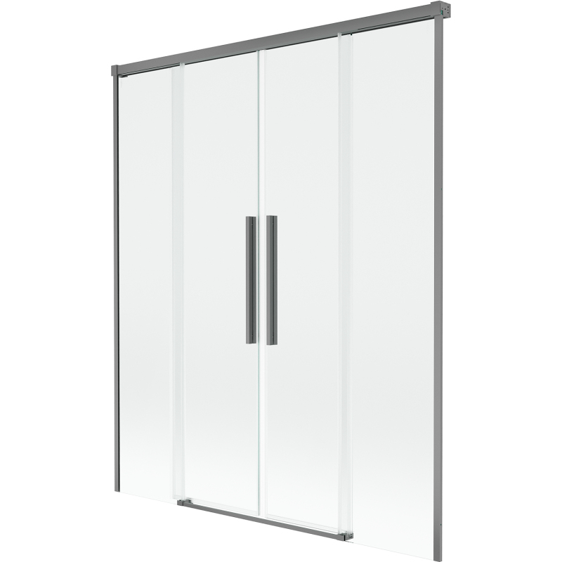 Technické údaje: Šírka: 160 cm Výška: 150 cm Typ: Dvojkrídlové Montáž: Univerzálny Typ: Pohyblivé/Posuvné Typ skla: Tvrdené Farba skla: Priehľadná Hrúbka skla: 8 mm Povrchová úprava: Strieborná Profil: Hliníkový Povlak pre ľahké čistenie otvorov Možnosť naklopenia dverí na čistenie siete Magnetický prúžok a elastomérové tesnenie pre odvod vody Dva montážne systémy: - s profilom, ktorý umožňuje vyrovnanie nerovností stien - bez profilu v prípade dokonale rovných stien